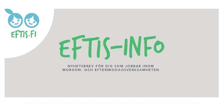 Eftis-info är ett nyhetsbrev för dig som jobbar inom morgon- och eftermiddagsverksamheten. Infobladet innehåller aktuell information om utbildningar och kurser, intressant material och mycket annat.